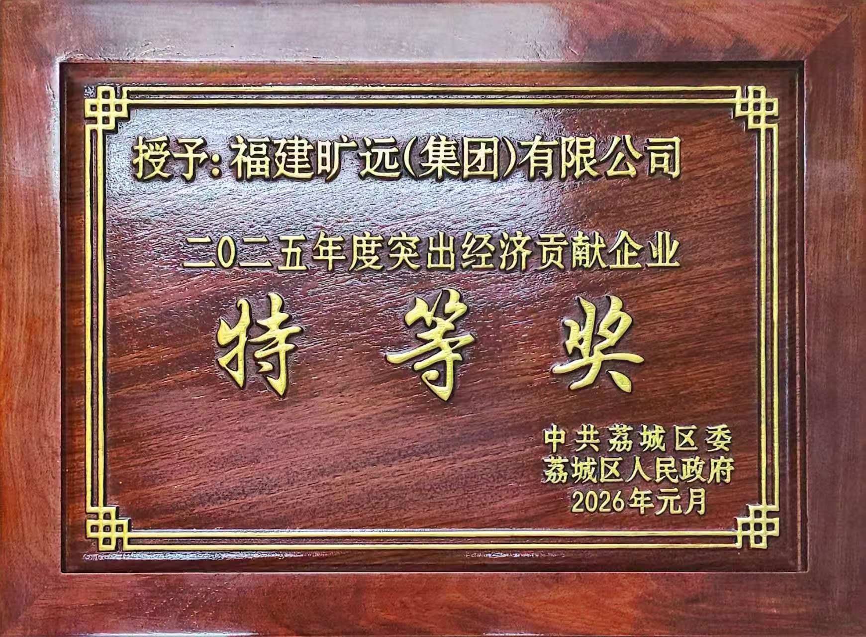2026年元月 福建曠遠(集團)有限公司榮獲“二〇二五年度突出經(jīng)濟貢獻企業(yè)特等獎”榮譽稱號